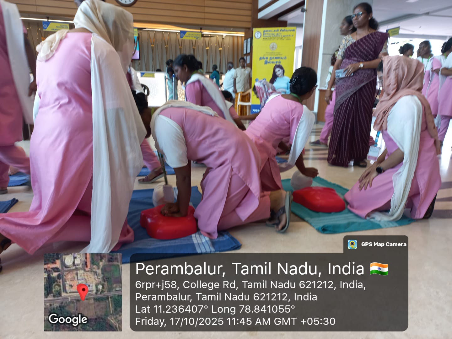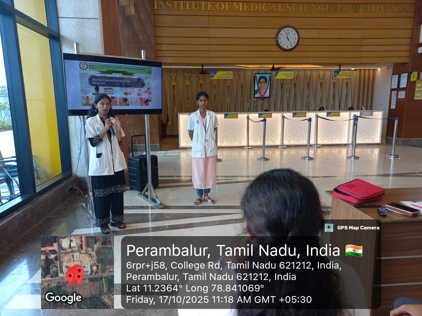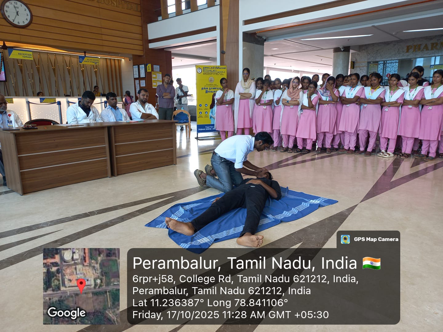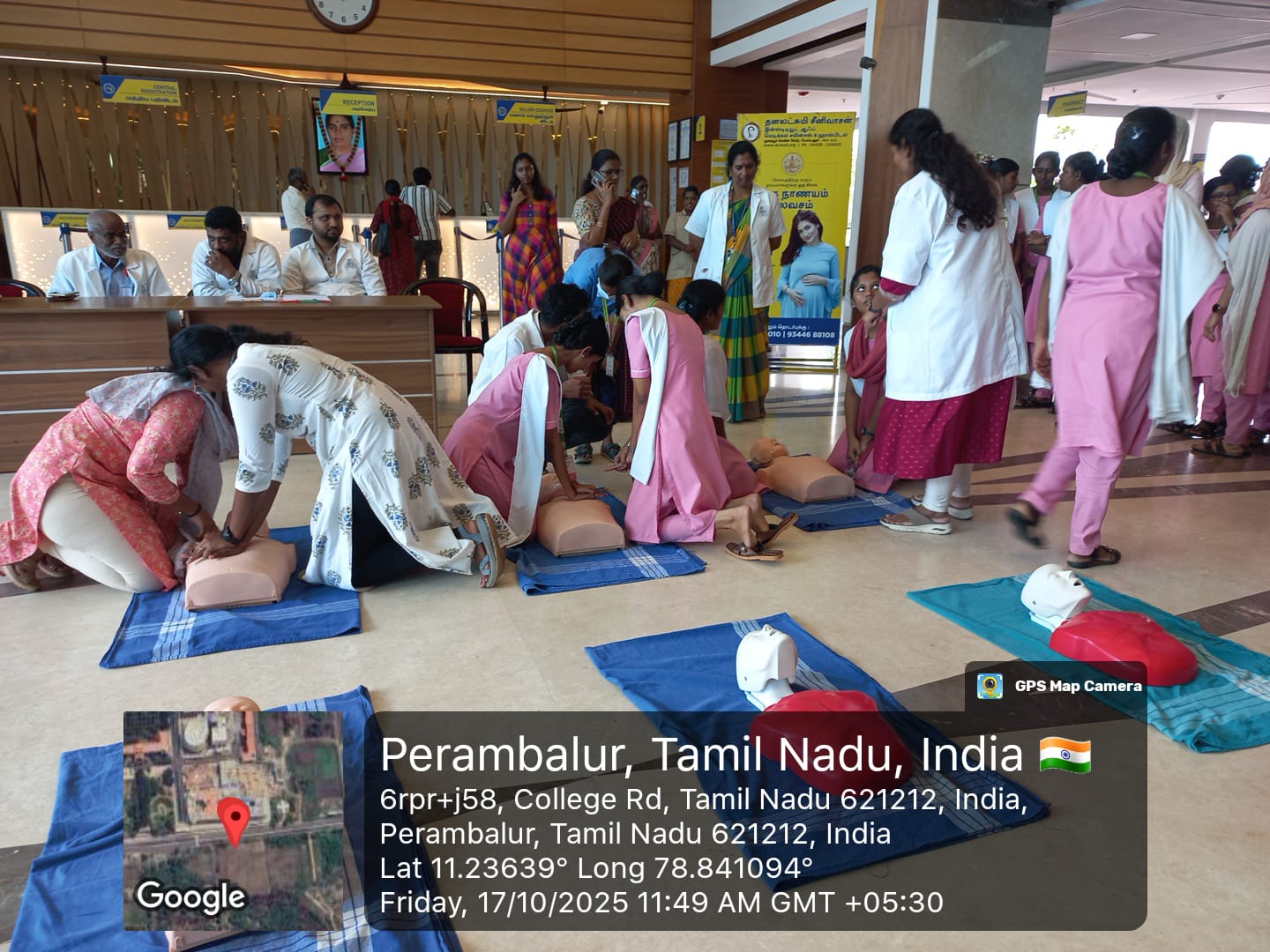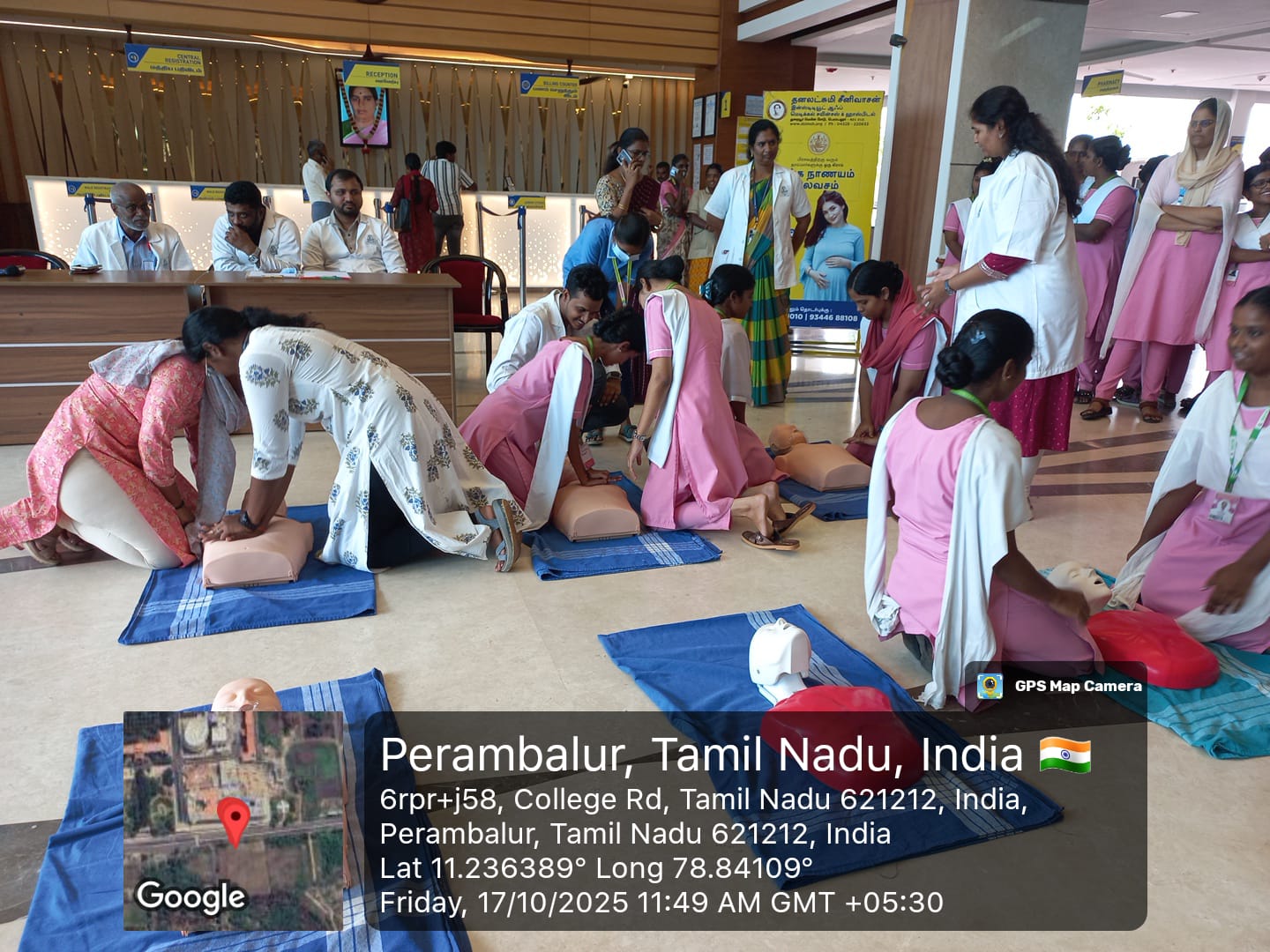 The School of Allied Health Sciences observed CPR Awareness Week - October 2025 with a series of activities aimed at educating the public and students on life-saving techniques during cardiac emergencies. Mass Demonstration on CPR Technique: As part of the Mass Gathering Preparedness Initiative, Dr. Paramasivan (Head of Anesthesia) and Dr. Vasanth (Assistant Professor, Emergency Medicine) along with their team members Dr. Sandiya, Dr. Jothiswaran, Mr. Manikandan and CCT Third Year students (Ms. Ayisha, Ms. Dharani, Mr. Kanitharan, Ms. Renuka, Ms. Rohini, Ms. Sathyabama) conducted a live demonstration on Cardiopulmonary Resuscitation (CPR). The session educated participants on the essential steps of CPR and stressed the importance of timely intervention. Street Play - Be a Lifesaver, Not a Bystander A street play was performed to highlight the importance of responding quickly during cardiac arrest. The performance emphasized how every individual has the potential to save lives with basic CPR knowledge and quick action. Poster Competition: Students of SIMS presented both e-posters and paper posters on CPR covering the concept, techniques for adults, infants and pregnant women, and the proper use of Automated External Defibrillators (AED). The posters served to create awareness on the importance of CPR in saving lives. Quiz Competition: A quiz competition was conducted for students on life-saving techniques. It included topics such as fundamentals of CPR, techniques for different age groups and conditions, and AED usage. The activity encouraged active participation and reinforced the importance of being prepared for cardiac emergencies. The CPR Awareness Week 2025 successfully enhanced knowledge, awareness, and preparedness among both students and the general public with the message - Every Second Counts - Be a Lifesaver.