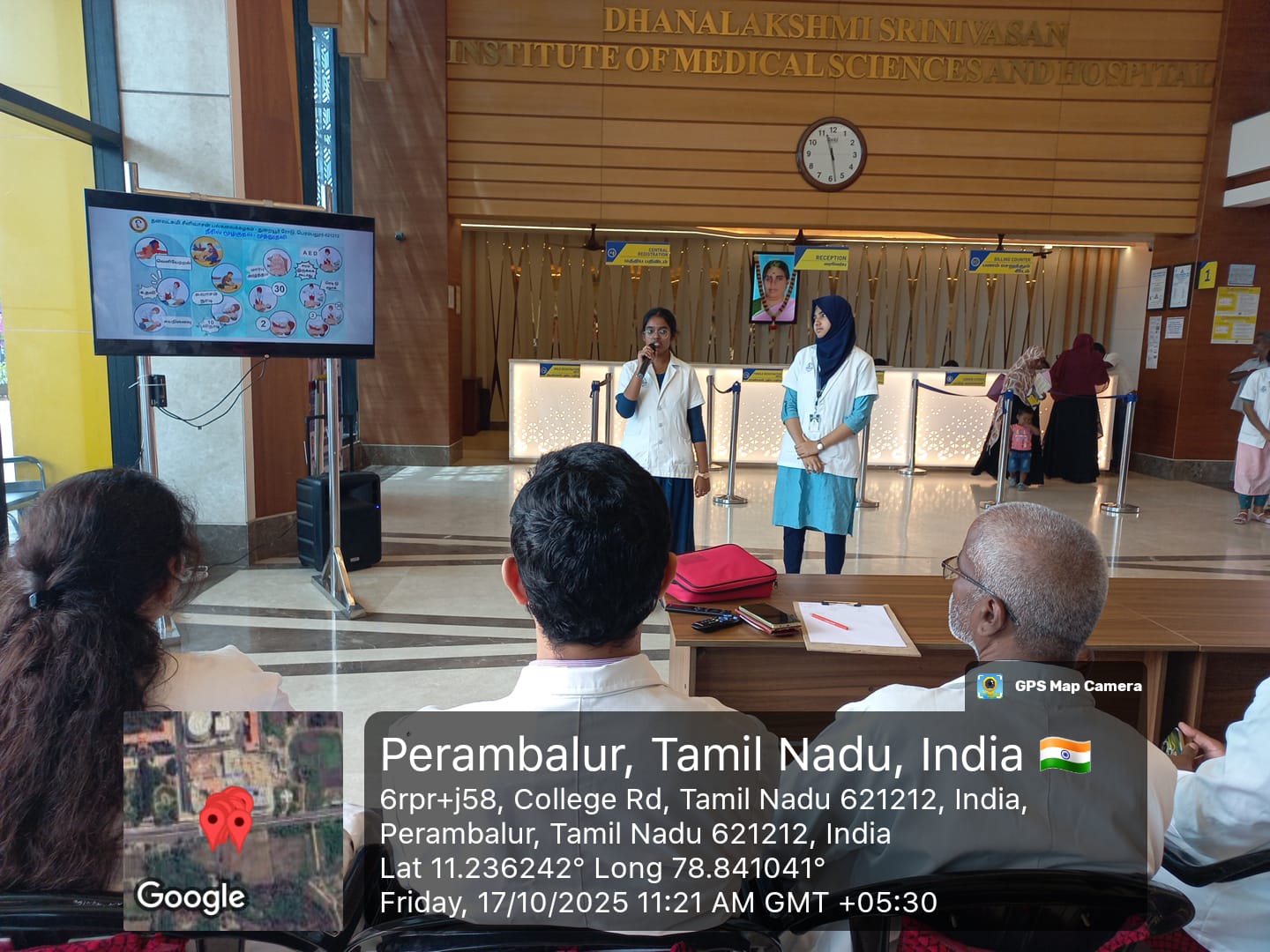 Helpline : +91 63841 76766 | 63841 76769The Dhanalakshmi Srinivasan Medical College and Hospital, Perambalur organized a program to observe World Schizophrenia Day with the objective of raising awareness about schizophrenia and promoting mental health education. The event commenced in the presence of our respected Dean, along with the Department of Psychiatry, whose valuable support and participation contributed significantly to the success of the program. An awareness speech was delivered by students and faculty, highlighting the nature of schizophrenia, its symptoms, challenges, and the importance of early diagnosis and treatment. A mime performance was also presented by students, creatively conveying the emotional and psychological struggles of individuals living with schizophrenia, with the aim of reducing stigma and fostering empathy. The event witnessed active participation from students and faculty members, promoting an open dialogue on mental health and encouraging support for those affected by psychiatric conditions. The program concluded with a note of thanks to all contributors and attendees, reaffirming the institutions commitment to mental health awareness and community education.