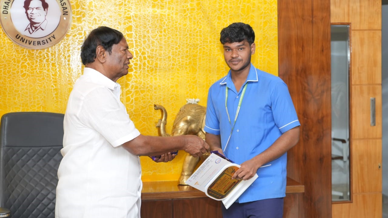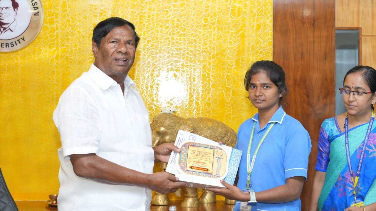 Helpline : +91 63841 76766 | 63841 76769We are delighted to announce that Ms. Fathima, a dedicated 3rd-year B.Sc Radiography student of our esteemed institution, has been honored with the Third Prize in the Oral Presentation category at the prestigious National Conference hosted by Vinayaka Mission research foundation, School of Allied health Science, Salem. This remarkable achievement stands as a testament to her exceptional academic prowess and innovative thinking. The conference, themed "Imagination Frontiers in Radiology," brought together more than 30 colleges from across India, creating a competitive platform for scholarly excellence and knowledge exchange. Ms. Fathima's outstanding presentation and compelling articulation earned her a place among the best performers at this distinguished national event. The Honourable Chancellor graciously bestowed his blessings upon Ms. Fathima, recognizing her significant contribution to the field of radiography education and research. This accomplishment not only elevates Ms. Fathima's academic profile but also brings tremendous pride and laurels to our institution.