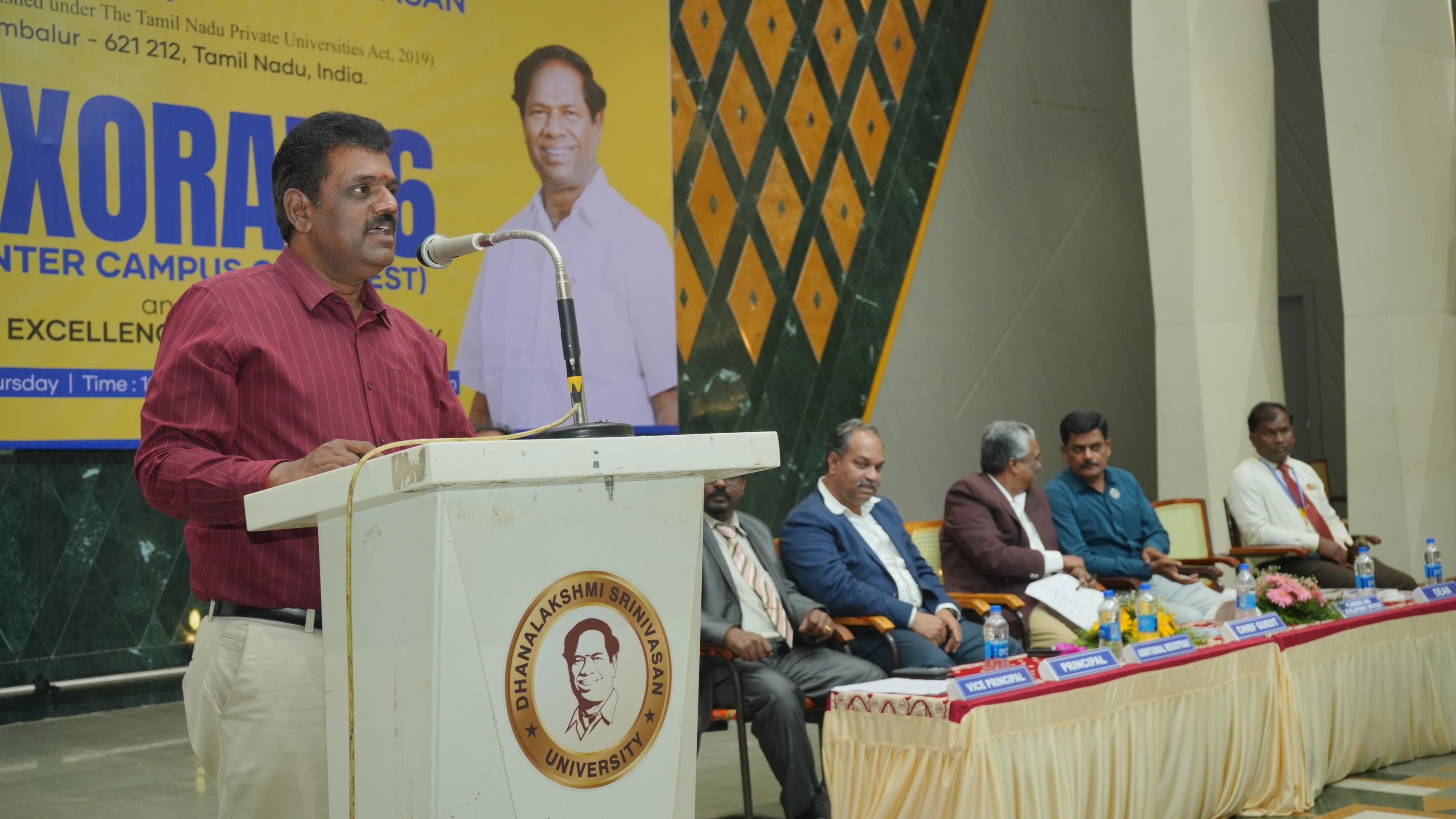 Dhanalakshmi Srinivasan University proudly hosted the Freshers Launch and NextGen Tech Orientation Programme for the 2025-2026 batch, welcoming new students into the School of Engineering and Technology with energy and inspiration. Presided over by Shri. A. Srinivasan, Esteemed Chancellor, the event featured insightful sessions from distinguished chief guests Mr. Arshi Krishnachar, Vice President of Seoul Semiconductor Company Ltd., Bengaluru, and Mr. Ananth Jagannathan, Senior Director at Oracle Financial Services Software Limited, Chennai. Their guidance on emerging technologies, industry expectations, and future opportunities motivated students to embark confidently on their academic journey. The university community came together to celebrate fresh beginnings, innovation, and the promise of a bright future for every budding engineer.