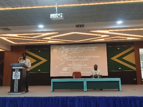Helpline : +91 63841 76766 | 63841 76769The School of Agricultural Sciences, Dhanalakshmi Srinivasan University, Perambalur, organized an Anti-Drug Awareness Programme on 18.09.2025 at the university campus for the I Year, 2025 Batch of all the departments of agriculture. The programme aimed to educate freshers about the harmful effects of drug abuse on health, academics, and personal life, and to promote a healthy and disciplined lifestyle. Dr. Abinav, DSMC, Perambalur, graced the occasion as the Chief Guest and delivered an insightful talk on the physical, psychological, and social consequences of drug addiction. He also explained the legal implications and emphasized the importance of staying away from intoxicants to achieve academic and personal success. Faculty members and resource persons conducted interactive sessions, sharing strategies for stress management, peer support, and making positive life choices. The programme highlighted the universitys commitment to maintaining a drug-free campus and encouraged students to be responsible, self-aware, and supportive of their peers. This initiative empowered freshers with knowledge and awareness to make informed decisions and lead a healthy, productive academic life.